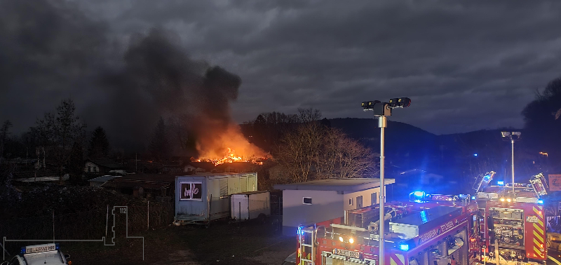 In der Kleingartenanlage im verlängerten Lindenweg standen 6 Gartenhütten im Vollbrand.