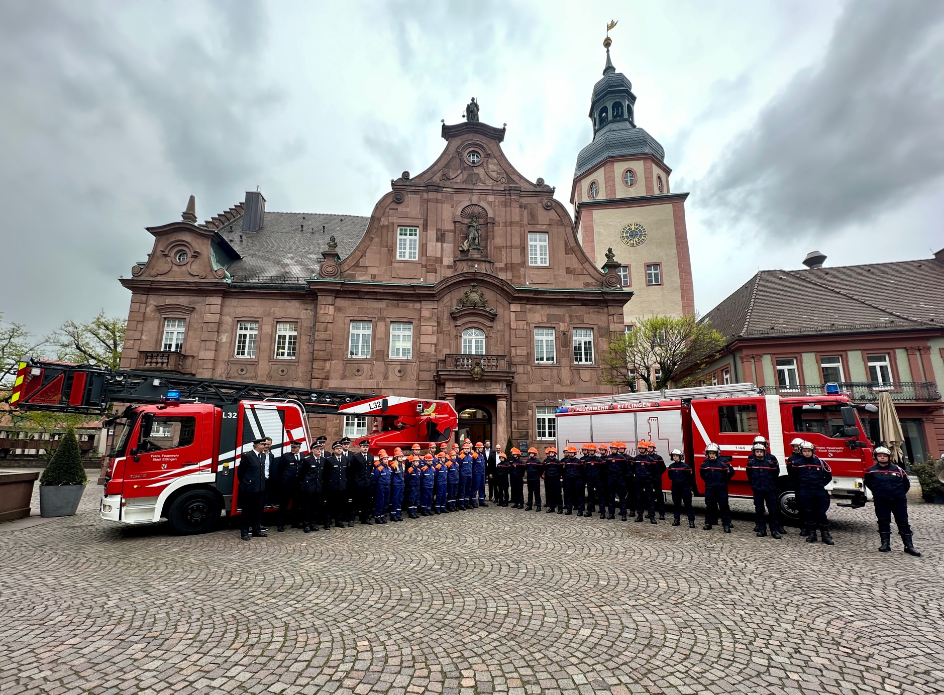 An den restlichen Tagen der Woche wurden wir unter anderem von OB Johannes Arnold zu einem gemeinsamen Empfang ins Ettlinger Rathaus eingeladen und haben danach bei einer gemeinsamen Übung die unterschiedlichen Vorgehensweisen im Löscheinsatz beider Länder kennengelernt. Zum Ausklang des Tages durften unsere französischen Freunde den Ausblick über Ettlingen aus der Drehleiter genießen.