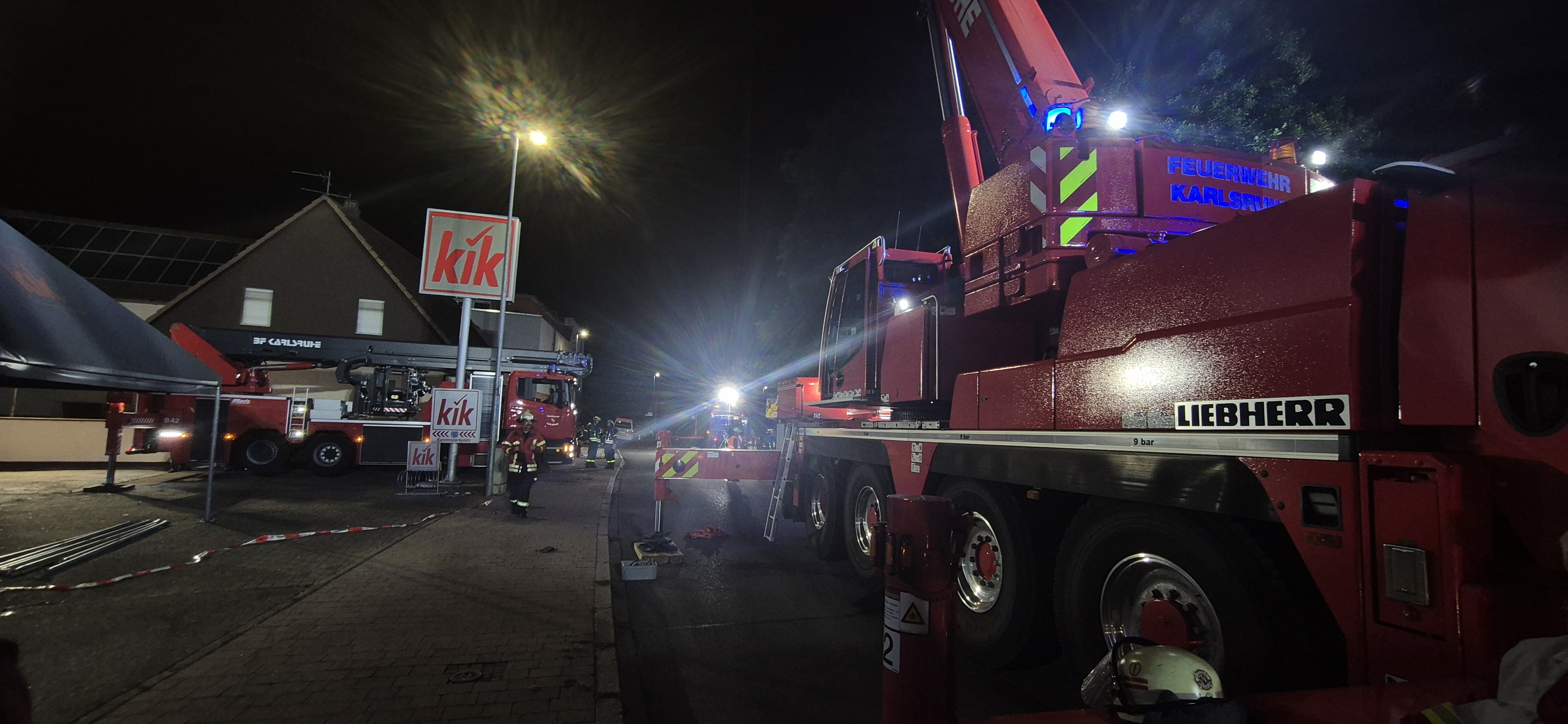 Insgesamt waren 133 Einsatzkräfte der Feuerwehr vor Ort. Die Feuerwehr Rheinstetten musste aufgrund eines größeren Unfalls im eigenen Einsatzgebiet frühzeitig aus dem Einsatz herausgelöst werden.
