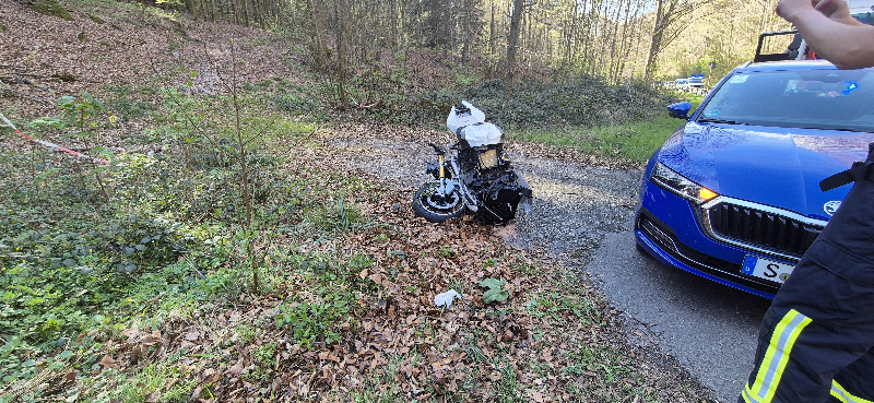 Durch das Hilfeleistungslöschfahrzeug der Abt. Ettlingen wurden auslaufende Betriebsstoffe nach einem Motorradunfall gebunden.