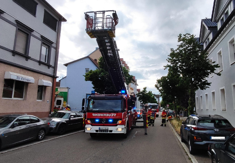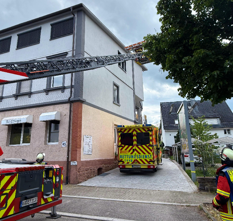 Die Abteilung Ettlingen-Stadt wurde zur Unterstützung des Rettungsdienstes alarmiert. Ein Patient in lebensbedrohlichem Zustand wurde mit der Drehleiter aus dem 2. OG heruntertransportiert und vom Rettungsdienst ins Krankenhaus eingeliefert.