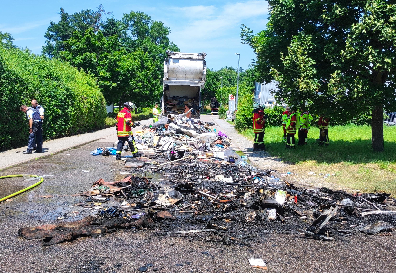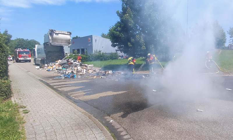 Noch während des laufenden Einsatz auf der L605 kam es zu einem Brand der Ladung eines Abfallsammelfahrzeuges im Ortsteil Spessart.