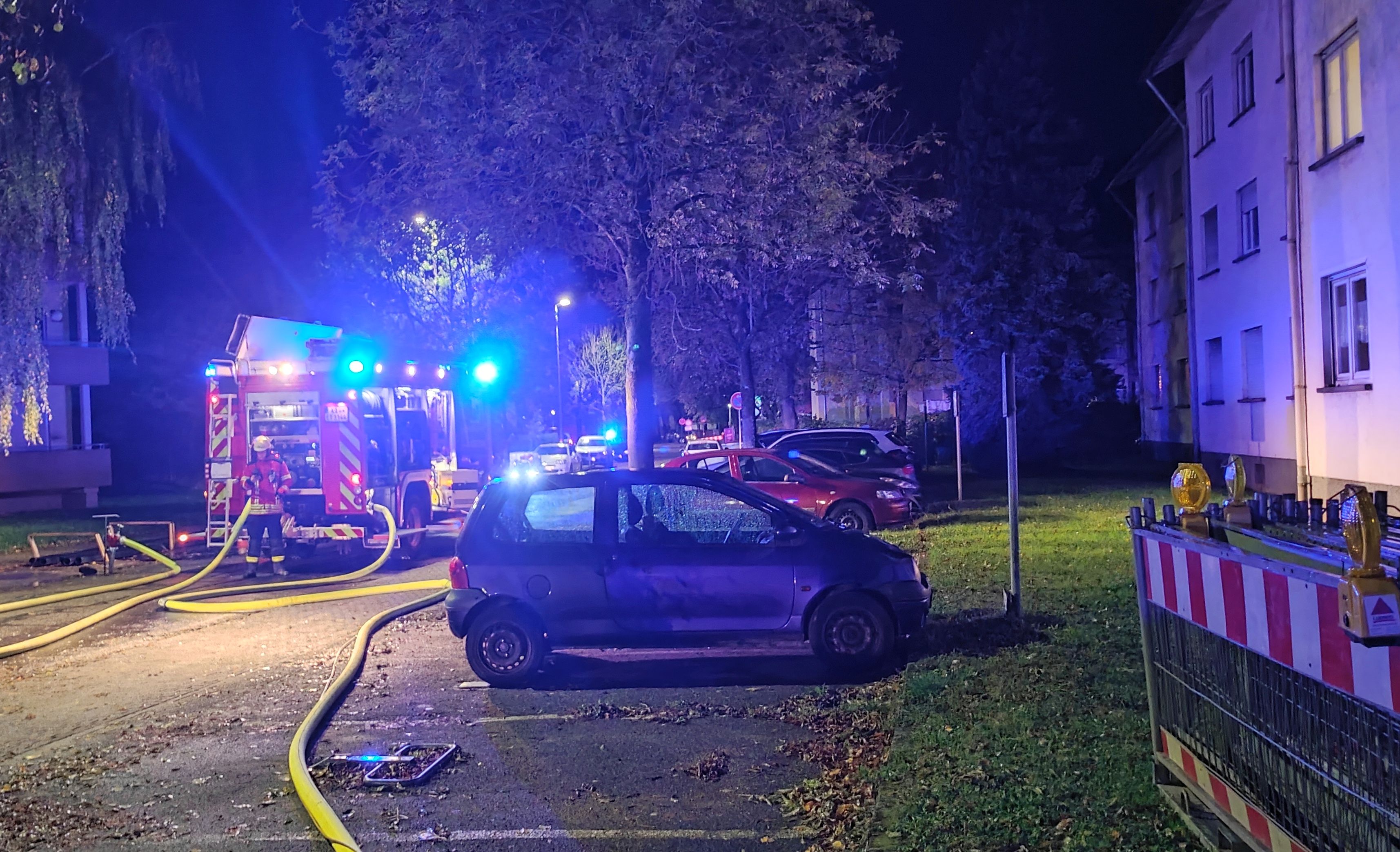 Die Feuerwehr löschte den Brand unter Atemschutz mit einem Rohr und befreite die betroffene Wohnung anschließend mittels Überdrucklüfter vom Rauch.
