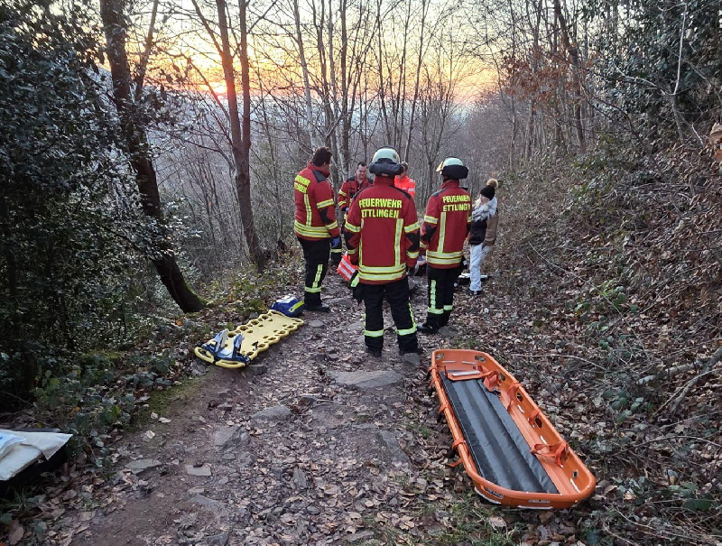 Am Zweiten Weihnachtsfeiertag wurde die Abteilung Ettlingen-Stadt zur Unterstützung des Rettungsdienstes alarmiert. Unterhalb des Wattkopfes war ein Fußgänger auf einem Wanderweg gestürzt. Der Patient wurde von der Feuerwehr mit der Schleifkorbtrage 500 Meter zum Rettungswagen getragen.