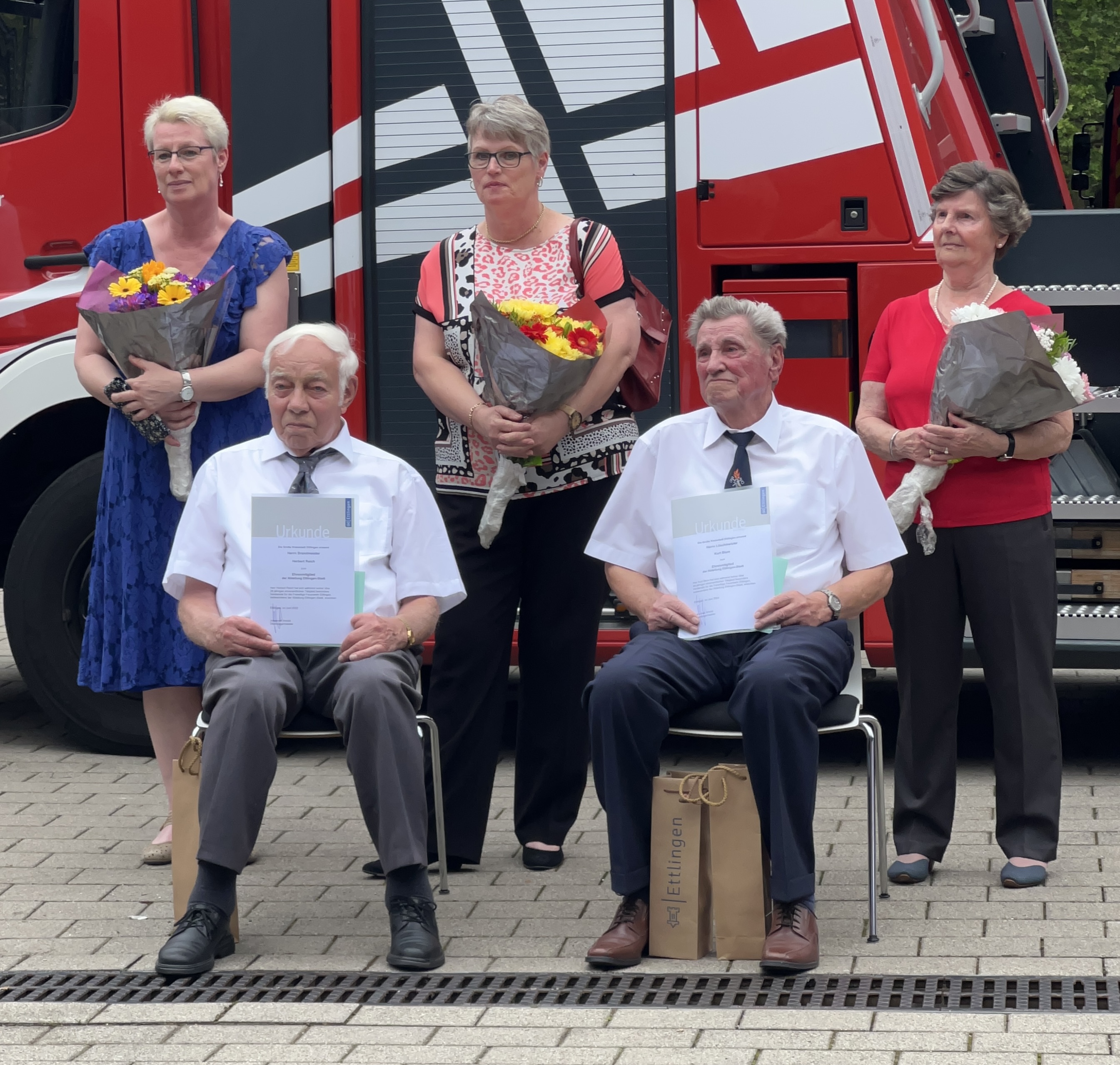 Auf Antrag von Altersobmann Josef Jilg stimmten der Abteilungsausschuss der Freiwilligen Feuerwehr, Abt. Ettlingen-Stadt sowie auch später der Gemeinderat einstimmig zu, die beiden Alterskameraden Herbert Reich und Kurt Blum zu Ehrenmitgliedern der Abteilung Ettlingen-Stadt zu ernennen.