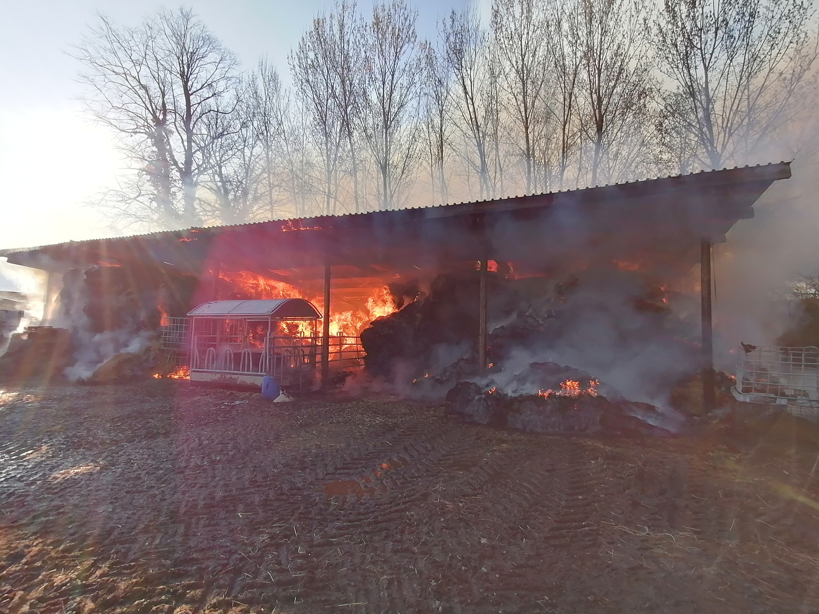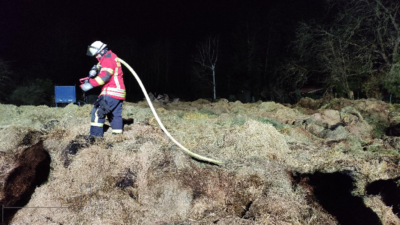 Mit einem Bagger wurde das Heu auseinandergezogen und abgelöscht. Diese Maßnahmen zeigten Erfolg, sodass zunächst gegen 21:30 die Einsatzmaßnahmen beendet werden konnten.